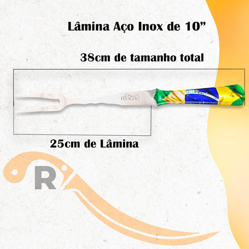 Garfo Artesanal Churrasco 10pol Aço Inox Cabo Brasil