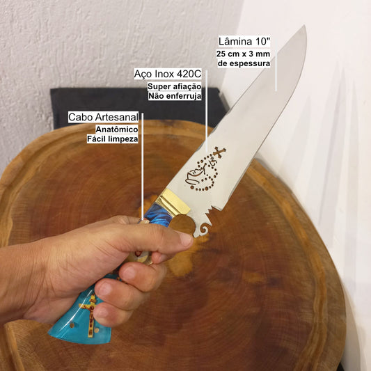 Faca de Churrasco Artesanal 10pol Aço Inox Nossa Senhora Híbrida