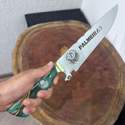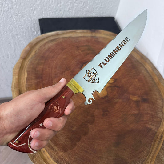 Faca Churrasco Artesanal Grêmio Time de Futebol Lâmina Vazada Inox