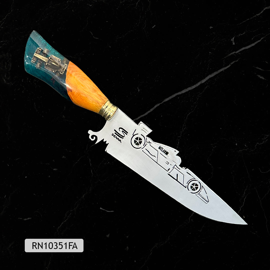 Faca artesanal personalizada com cabo híbrido (resina e madeira). Pode ser personalizado o cabo com pingente e lâmina com gravação a laser ou vazada.