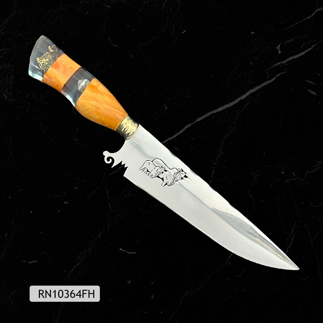 Faca artesanal personalizada com cabo híbrido (resina e madeira). Pode ser personalizado o cabo com pingente e lâmina com gravação a laser ou vazada.