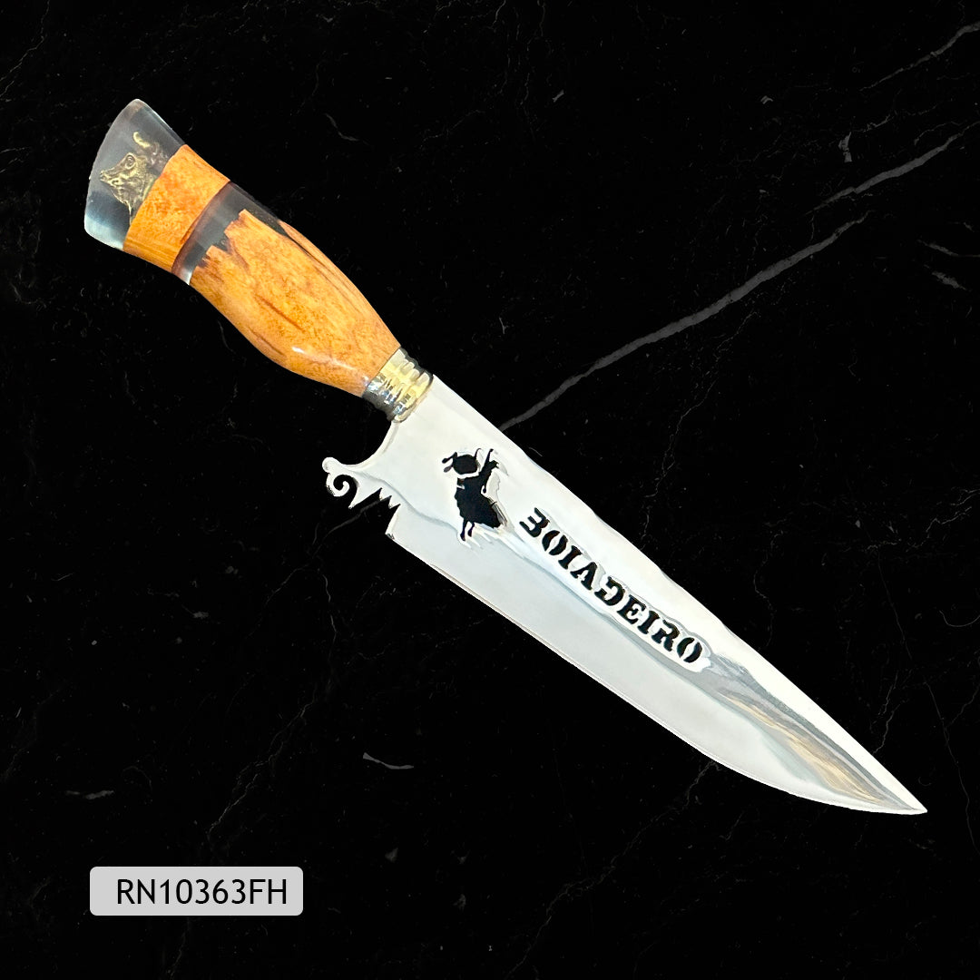 Faca artesanal personalizada com cabo híbrido (resina e madeira). Pode ser personalizado o cabo com pingente e lâmina com gravação a laser ou vazada.