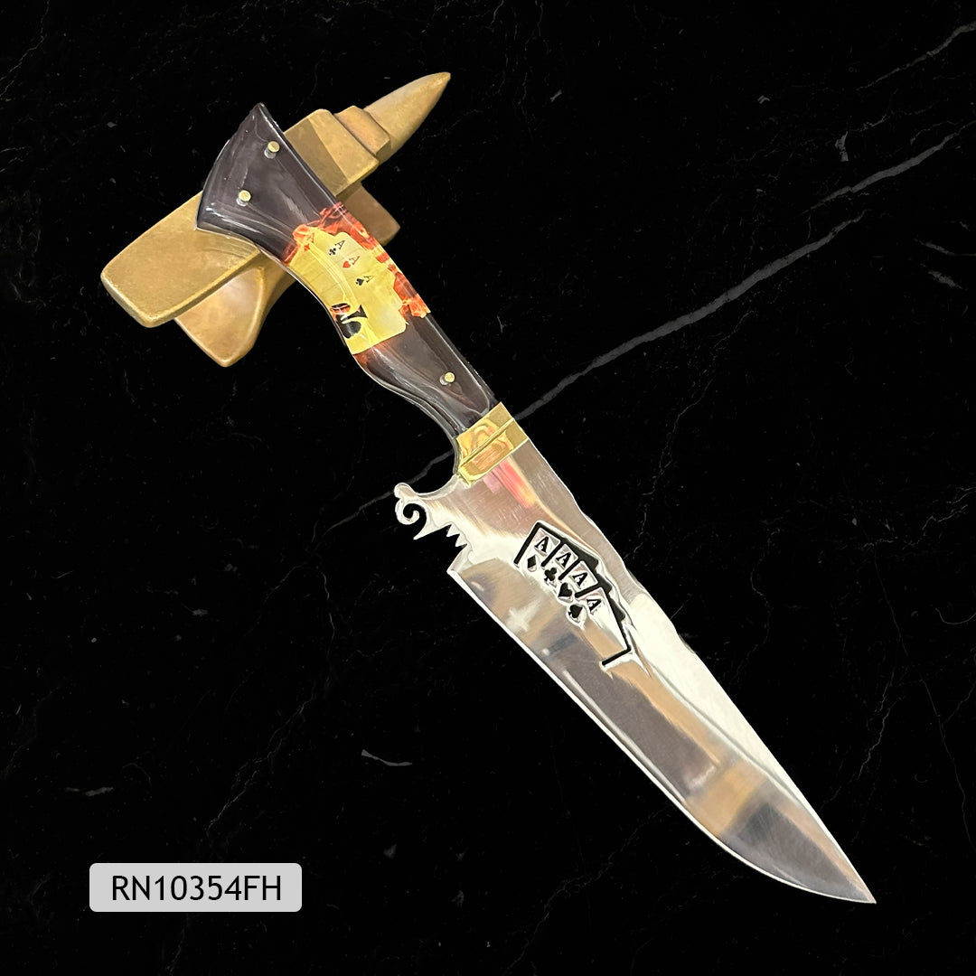 Faca artesanal personalizada com cabo em acrílico de alta resistência. Pode ser personalizado o cabo com impressão de alta qualidade e lâmina com gravação a laser ou vazada.