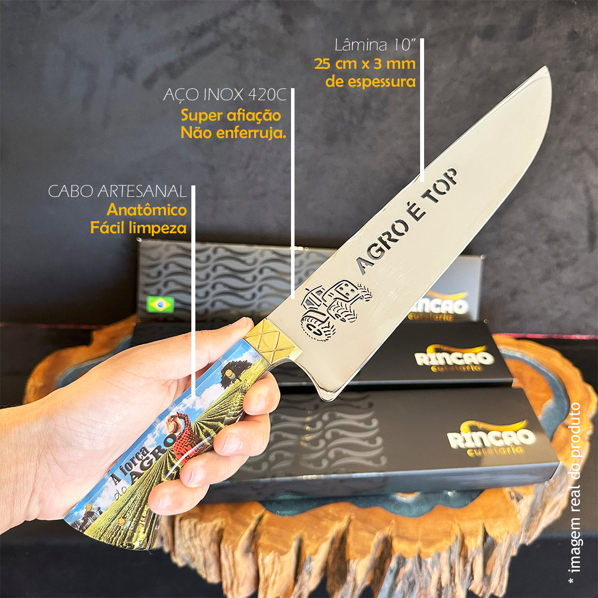 Faca Churrasco 10pol Aço Inox Agro é Top Campo - Cabo Acrílico
