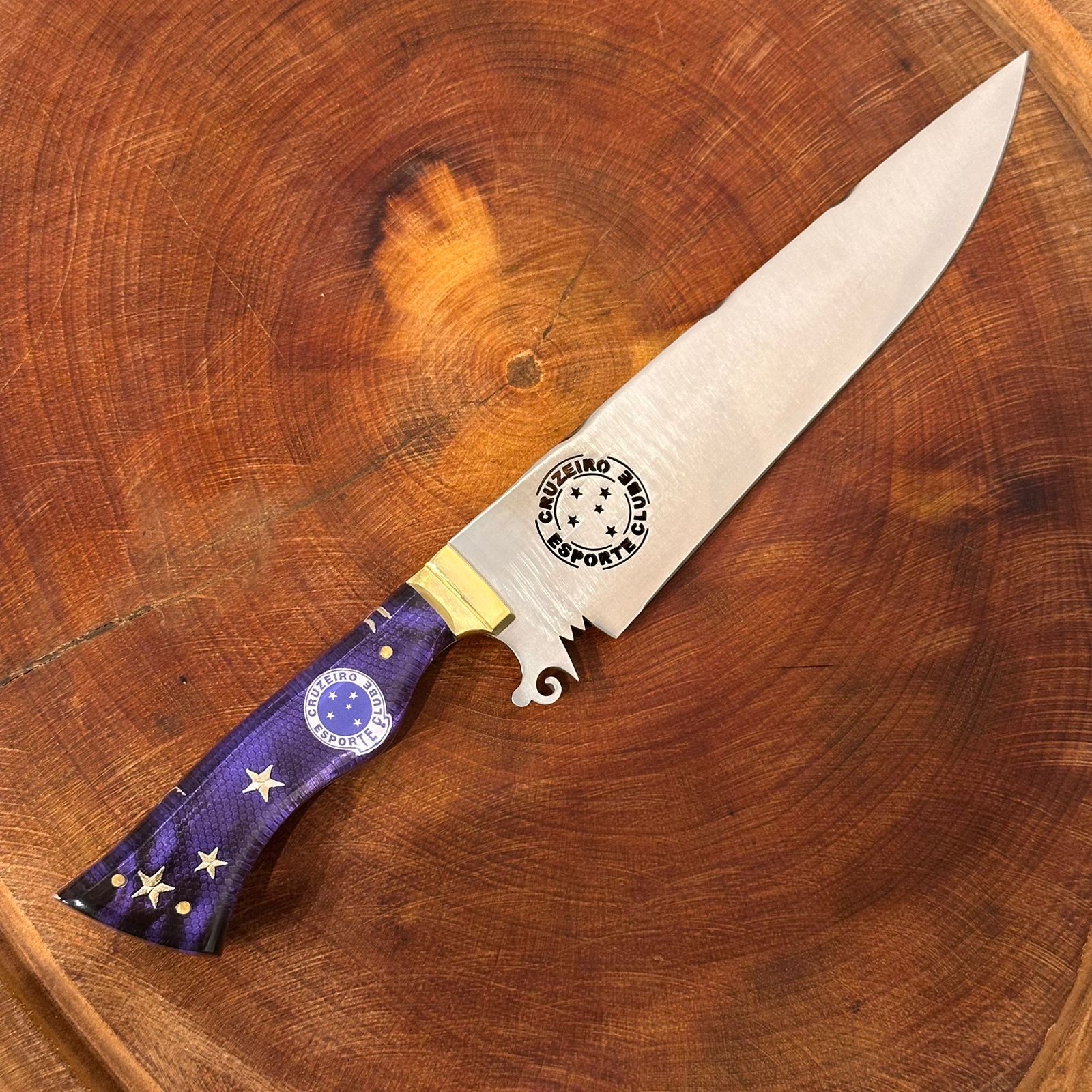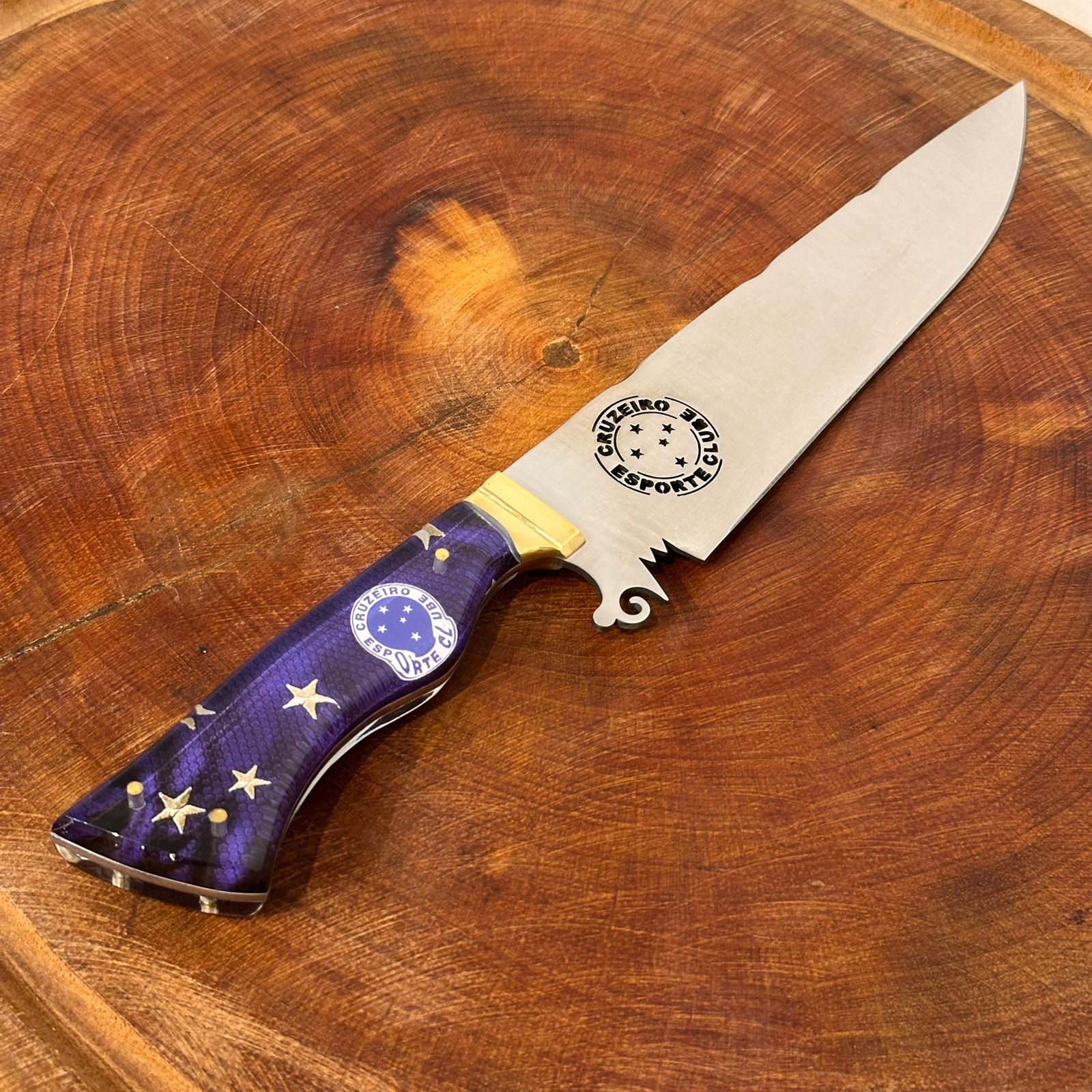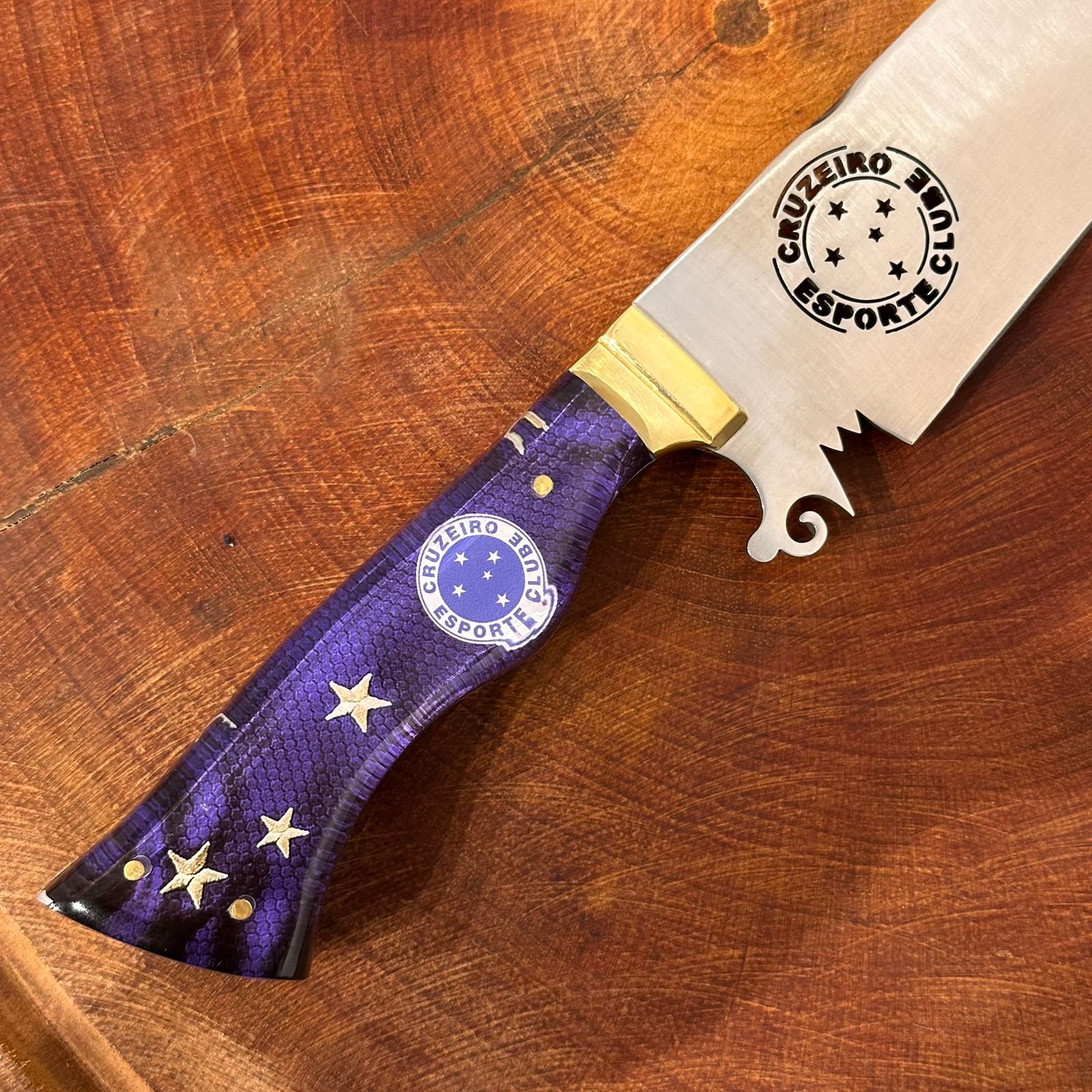 Faca Churrasco Artesanal Cruzeiro Time de Futebol Lâmina Vazada Inox