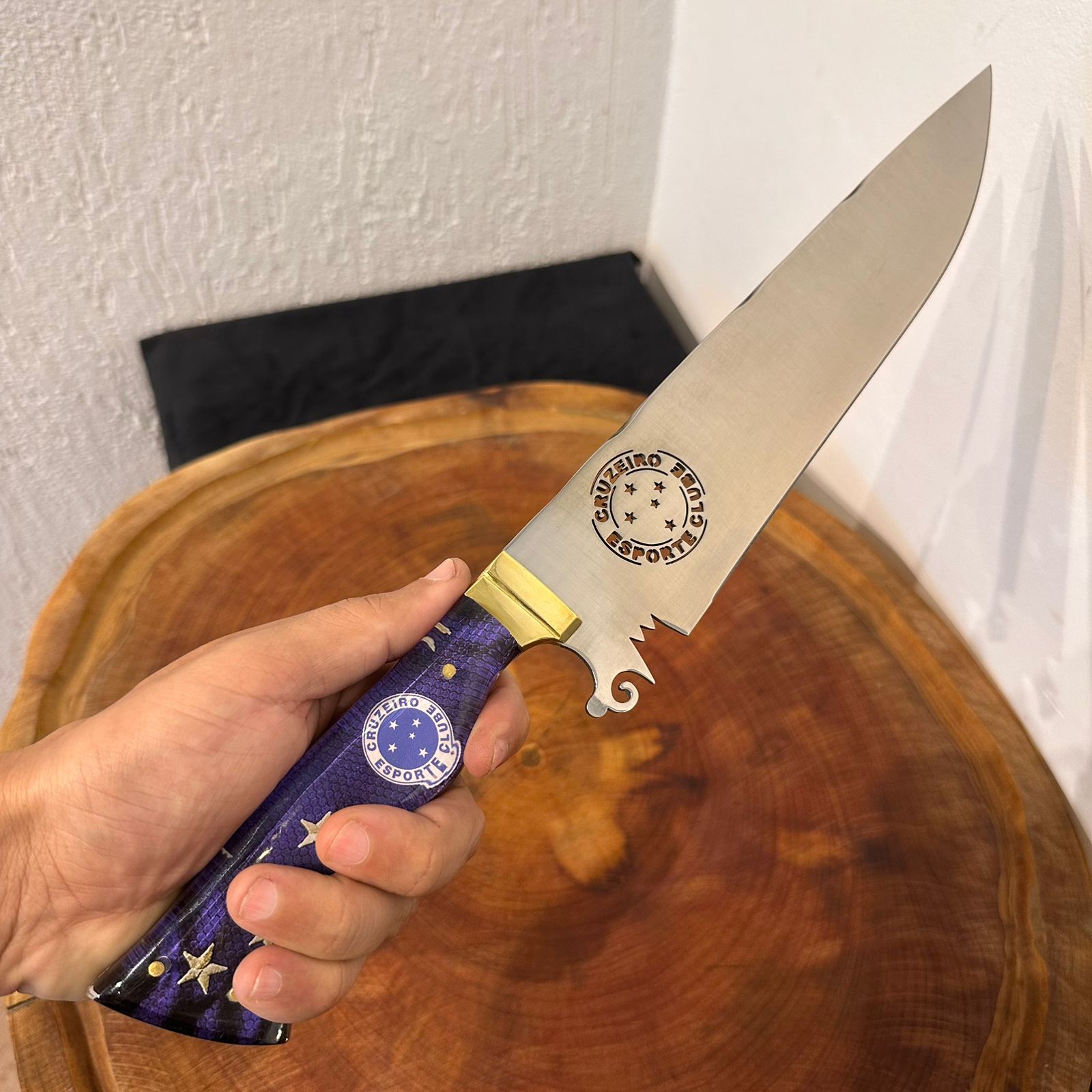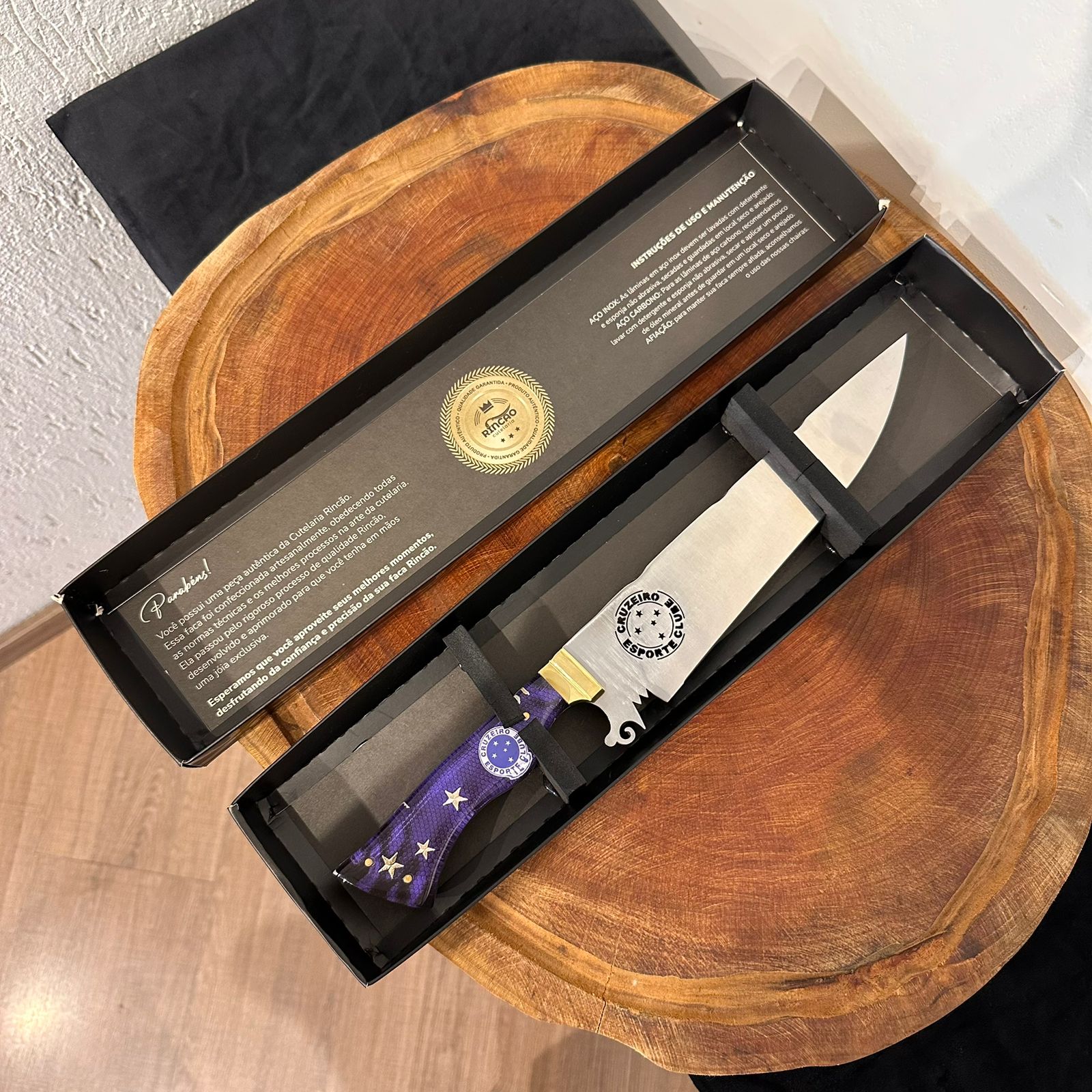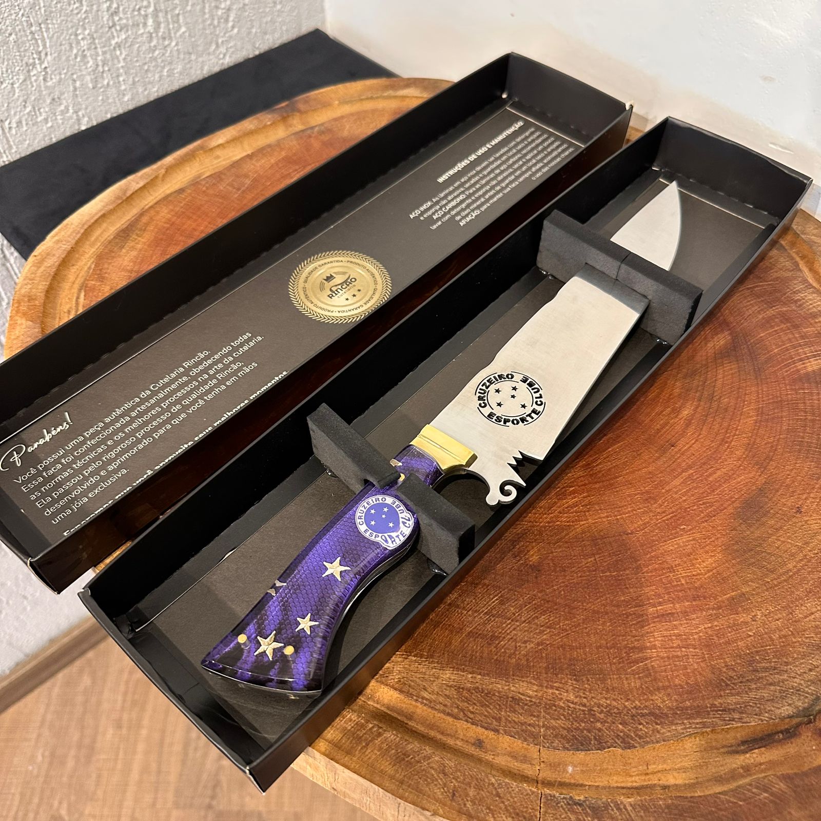 Faca Churrasco Artesanal Cruzeiro Time de Futebol Lâmina Vazada Inox