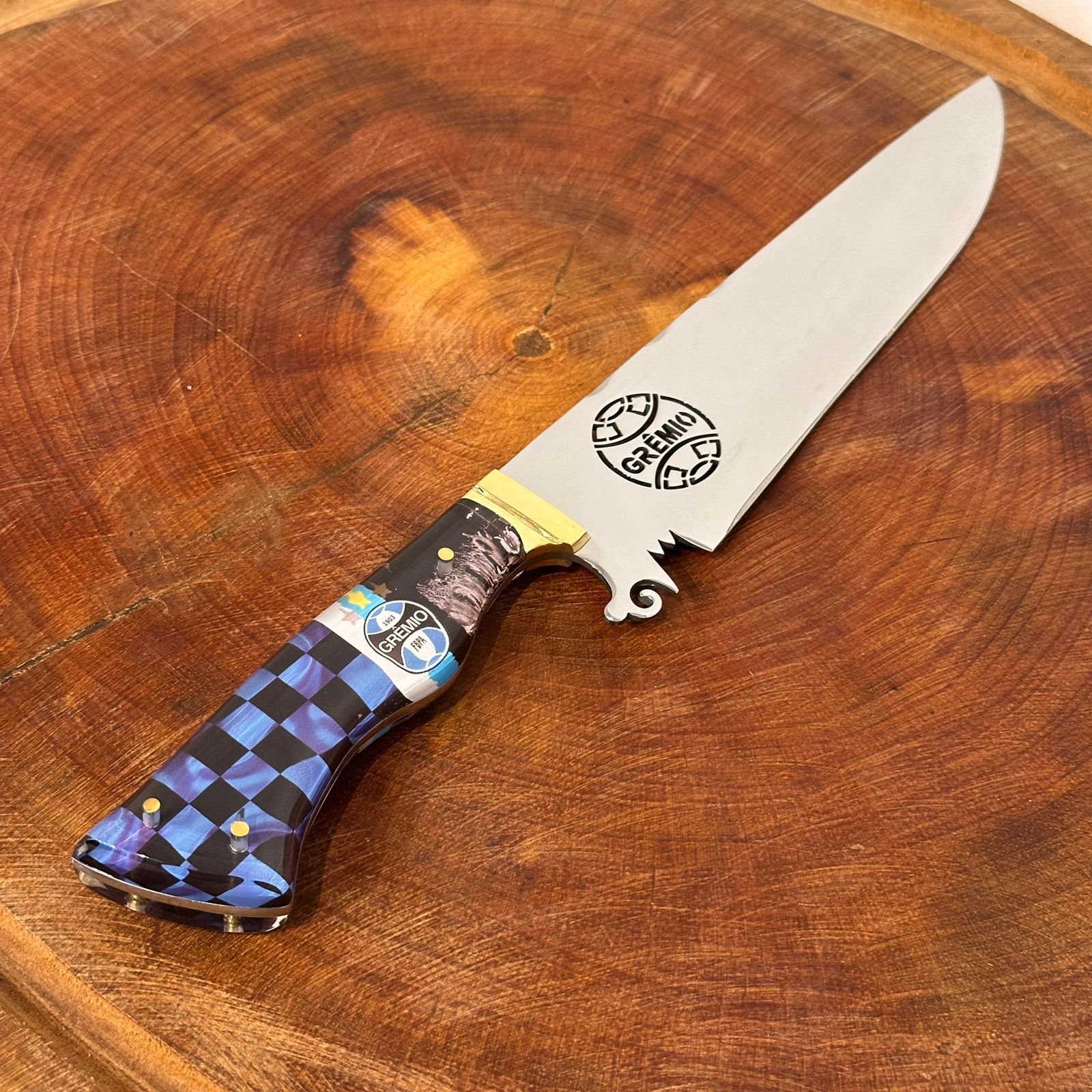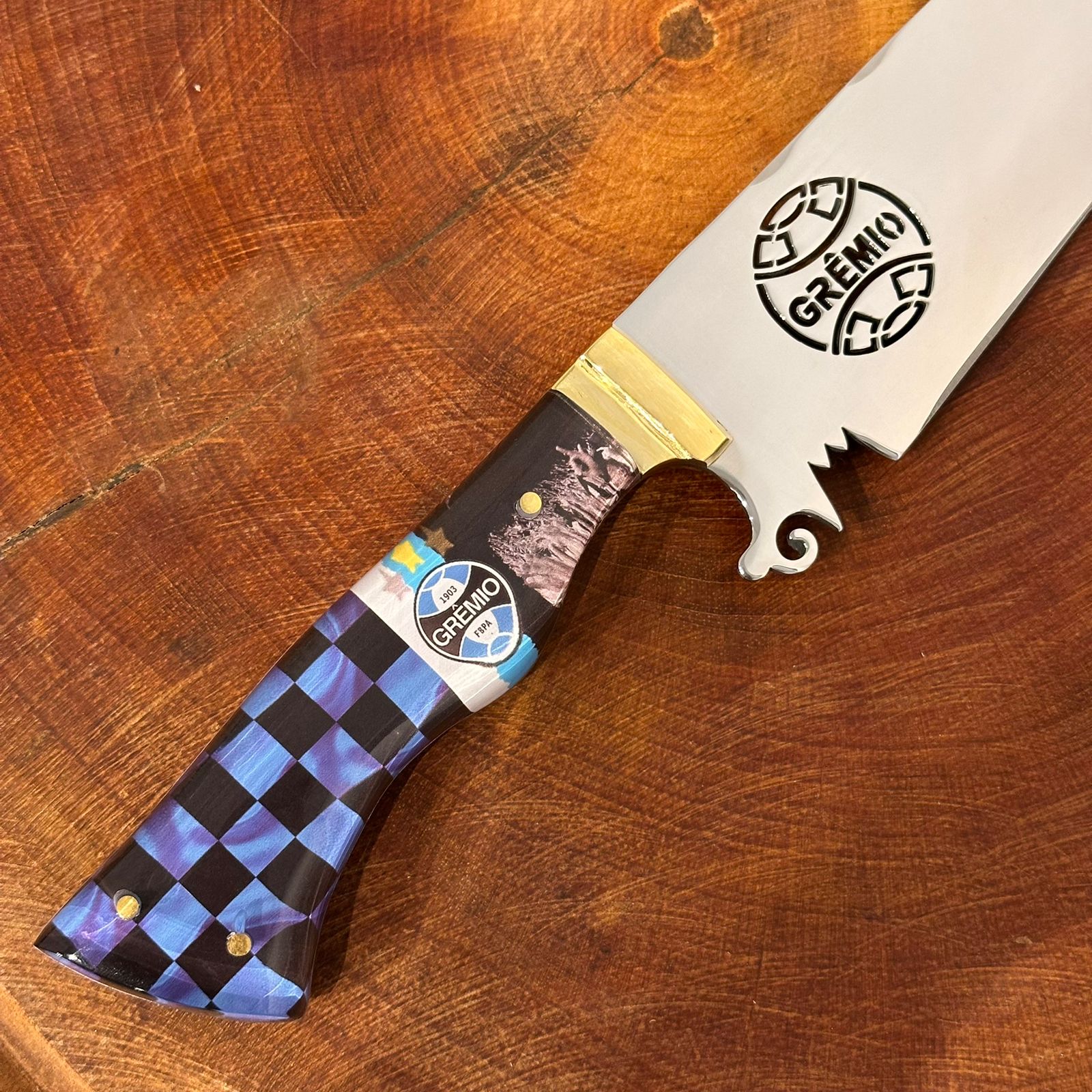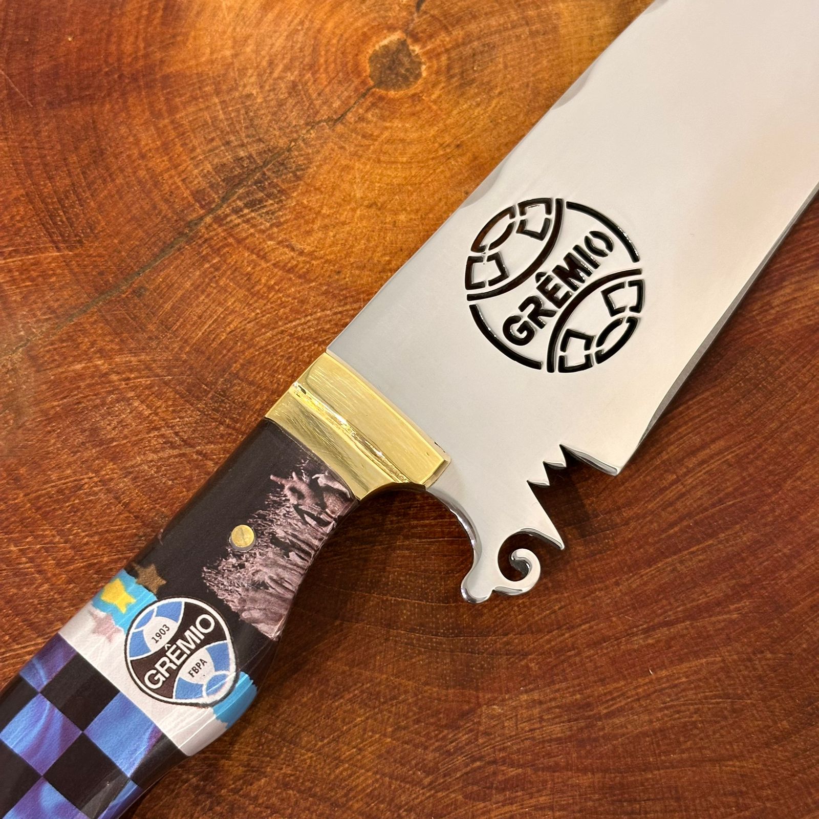 Faca Churrasco Artesanal Grêmio Time de Futebol Lâmina Vazada Inox