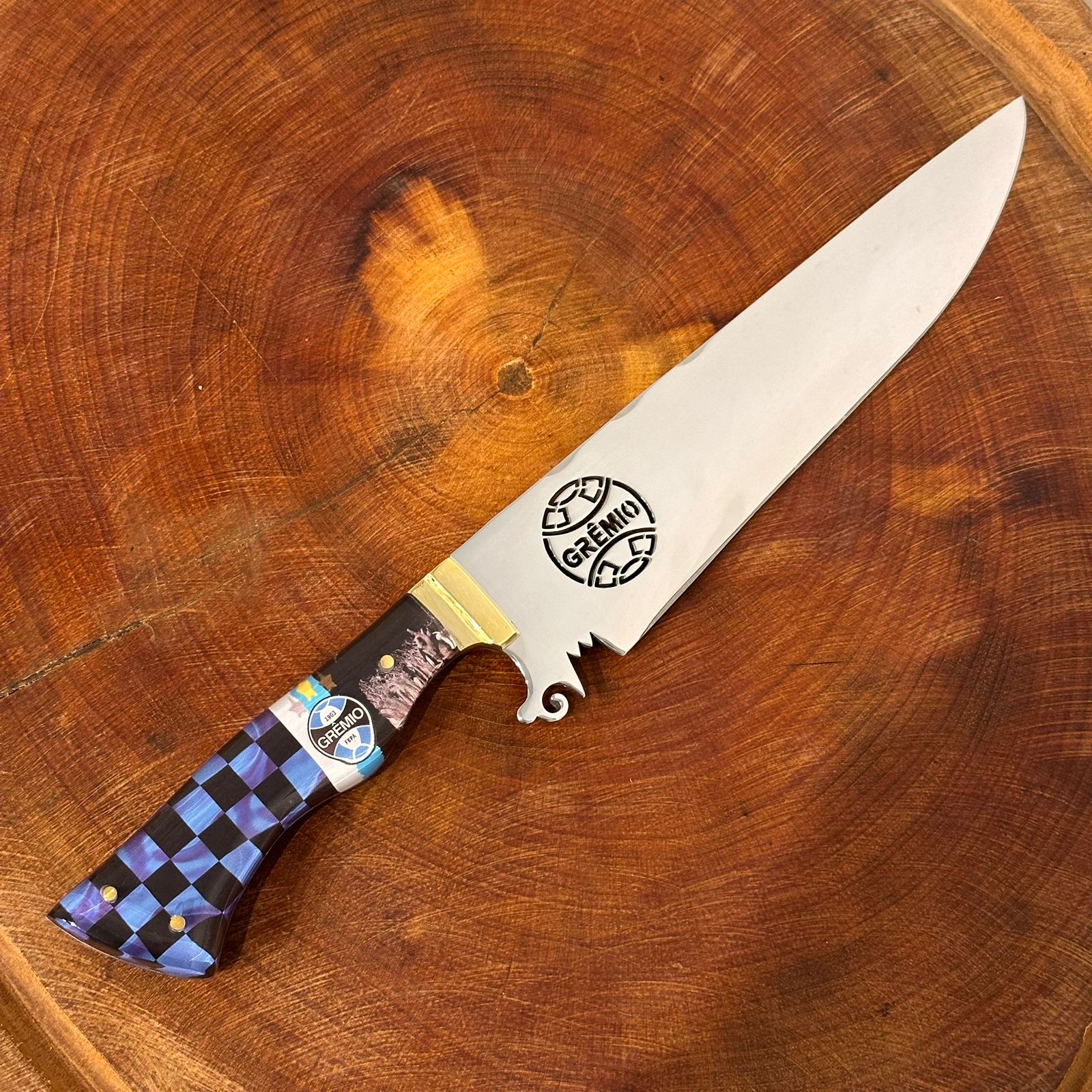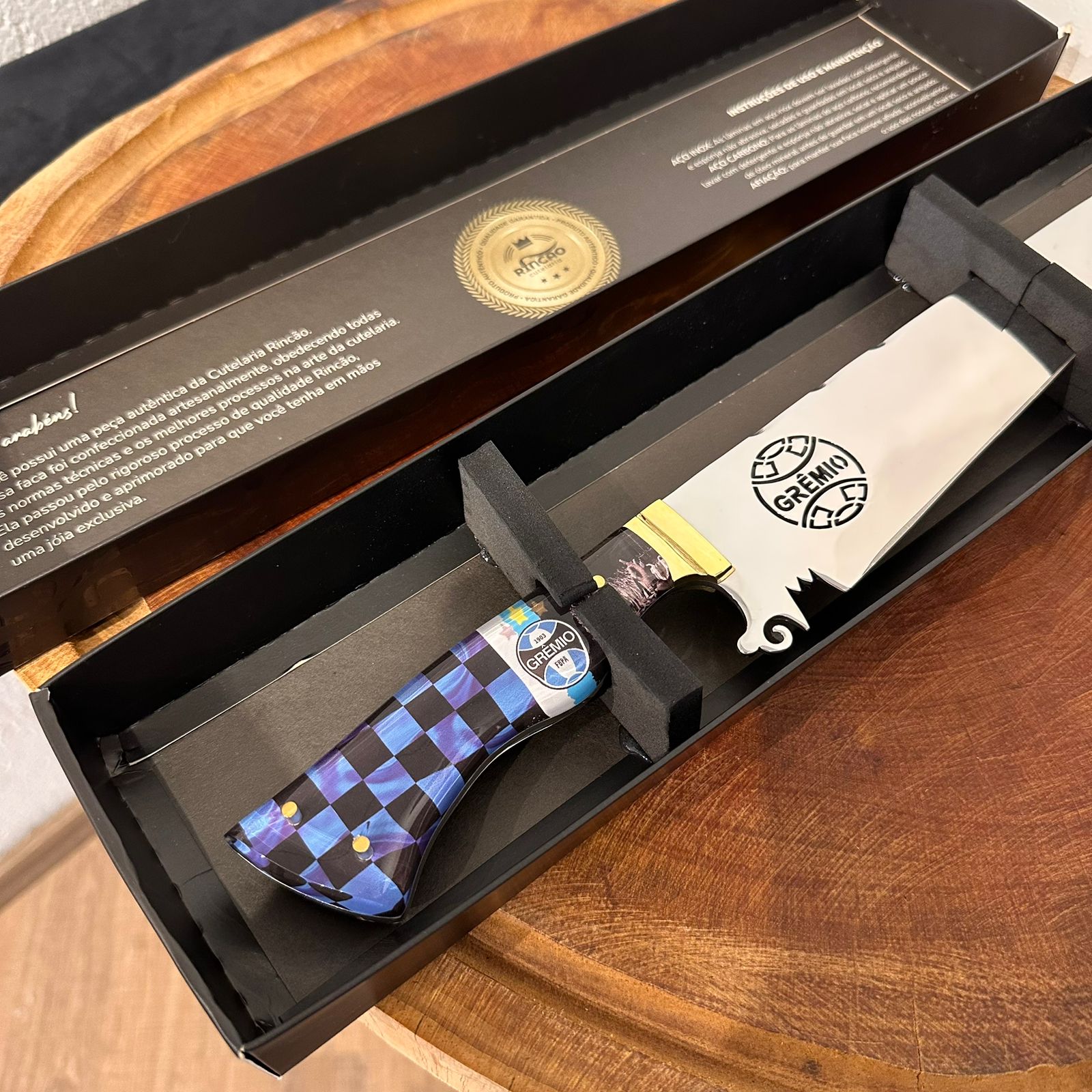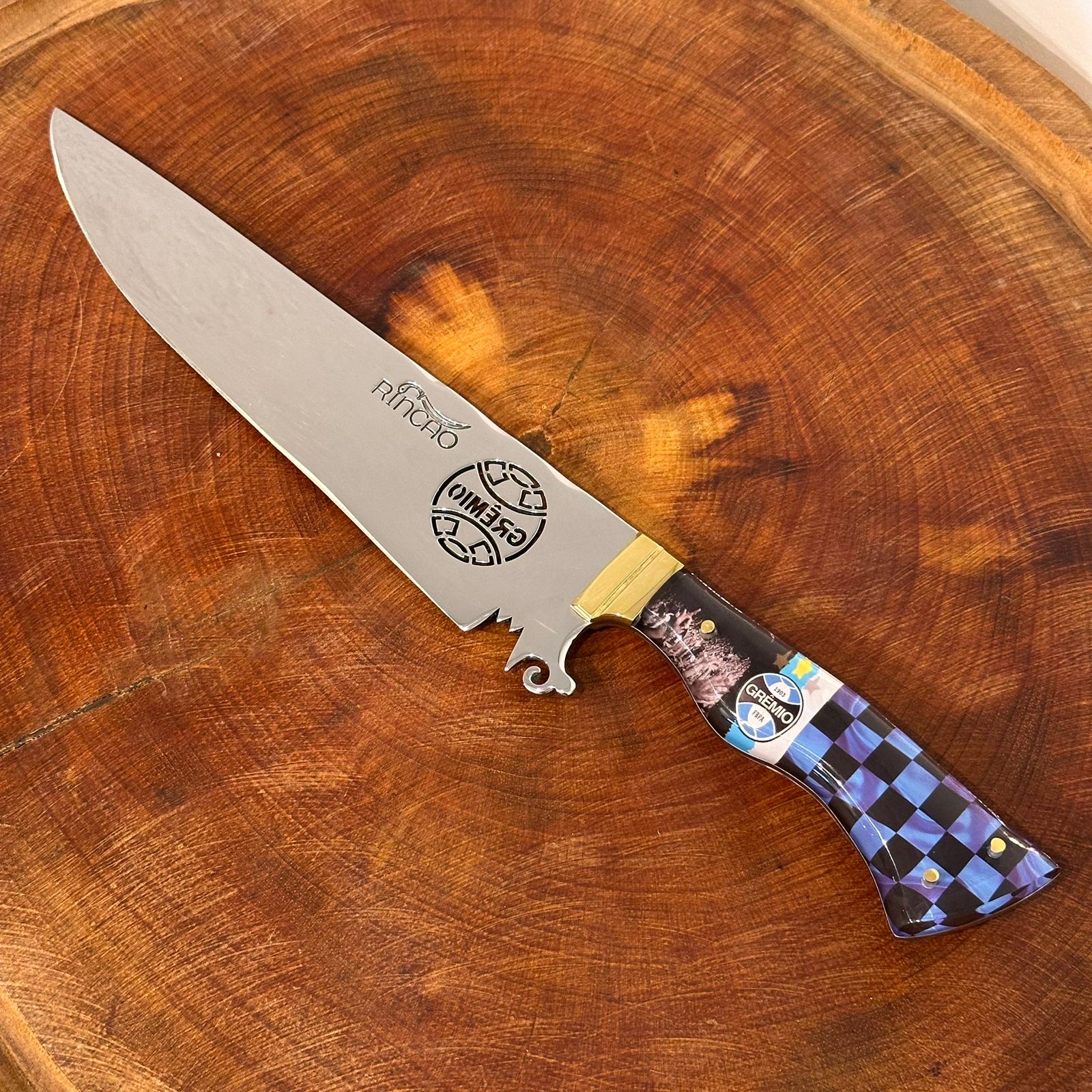 Faca Churrasco Artesanal Grêmio Time de Futebol Lâmina Vazada Inox