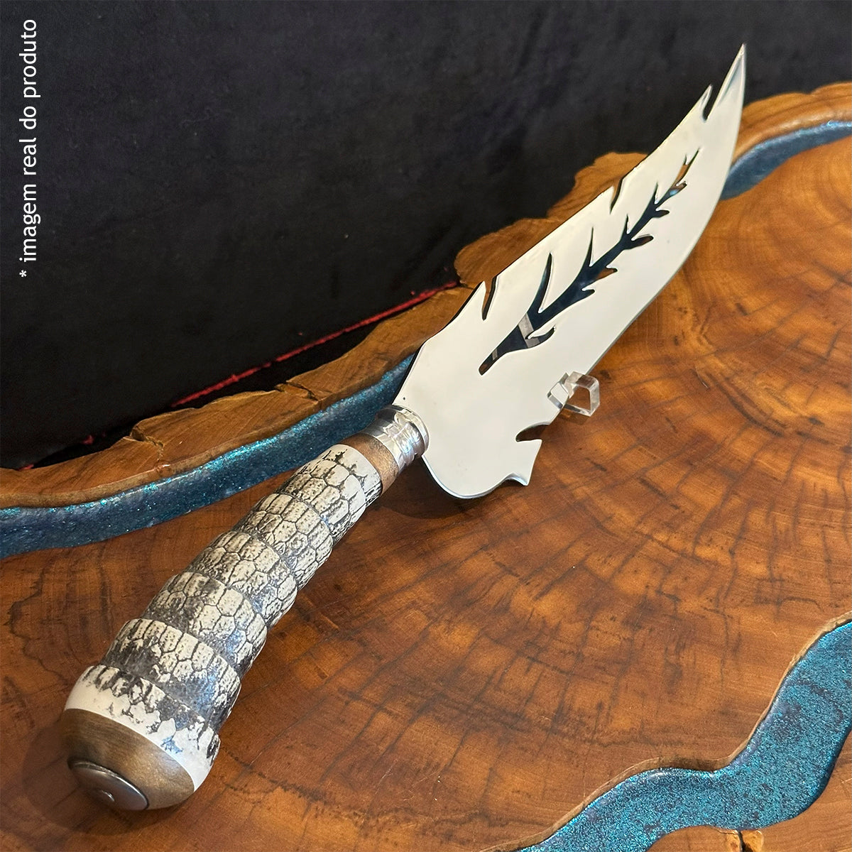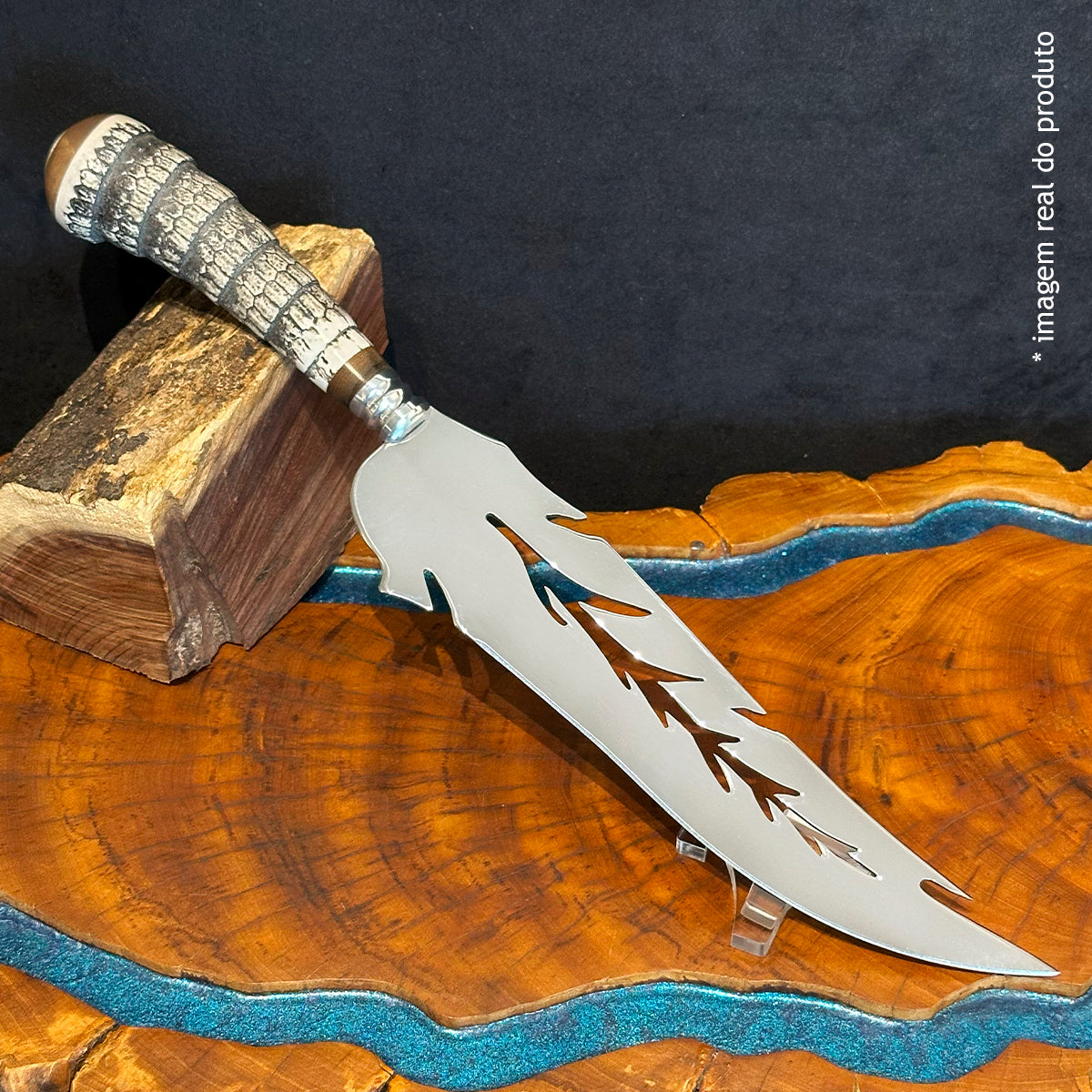 Faca Folha Artesanal 10pol Aço Inox - Cabo Rabo de Tatu