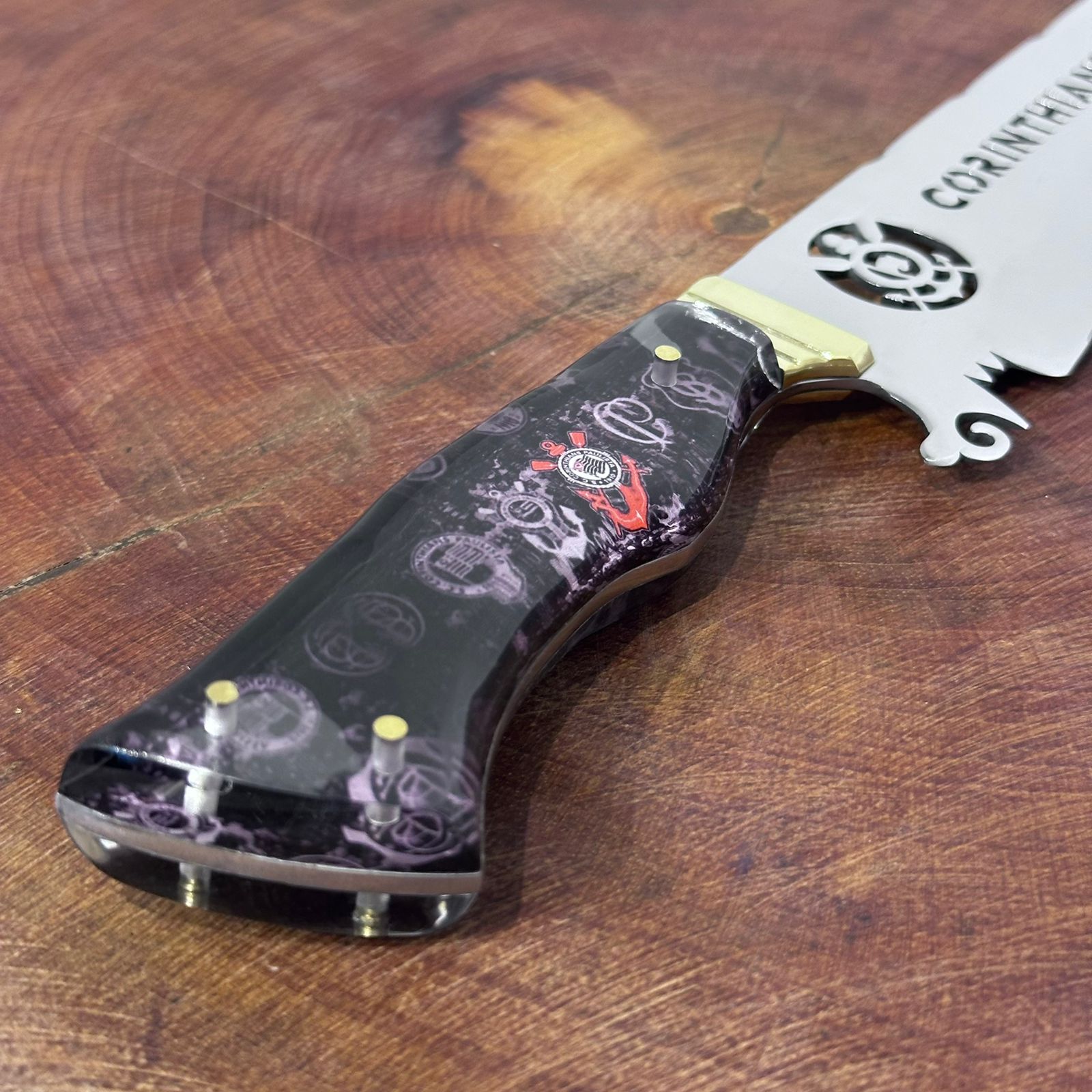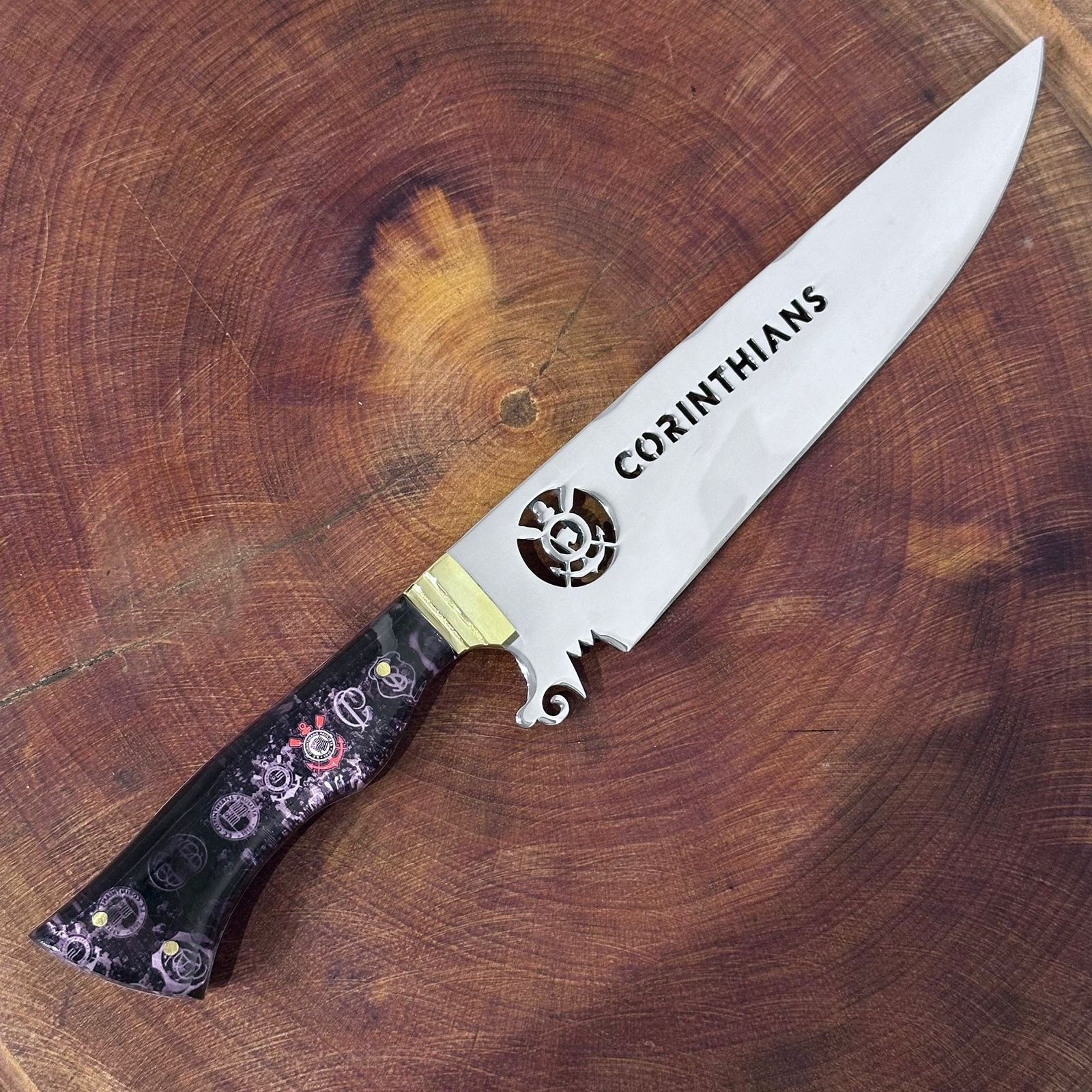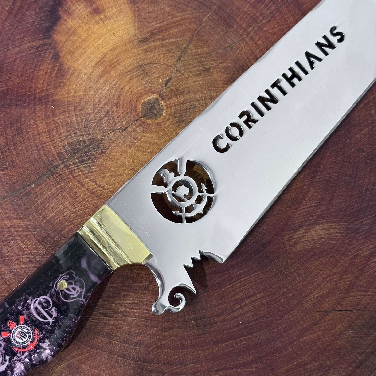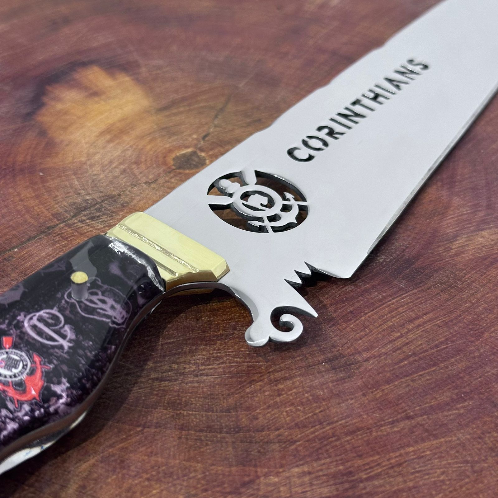 Faca de Churrasco Corinthians Time de Futebol Inox Lâmina Vazada