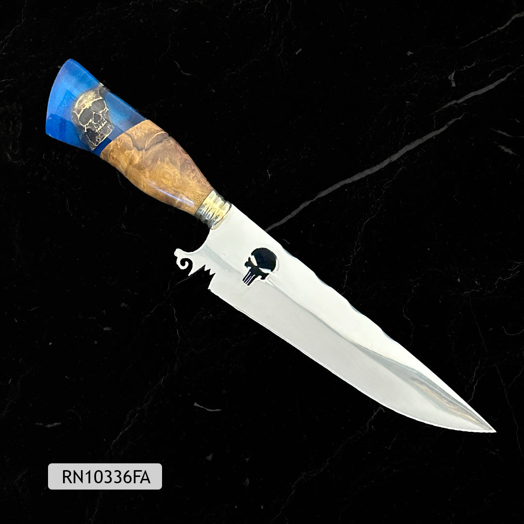 Faca artesanal personalizada com cabo híbrido (resina e madeira). Pode ser personalizado o cabo com pingente e lâmina com gravação a laser ou vazada.