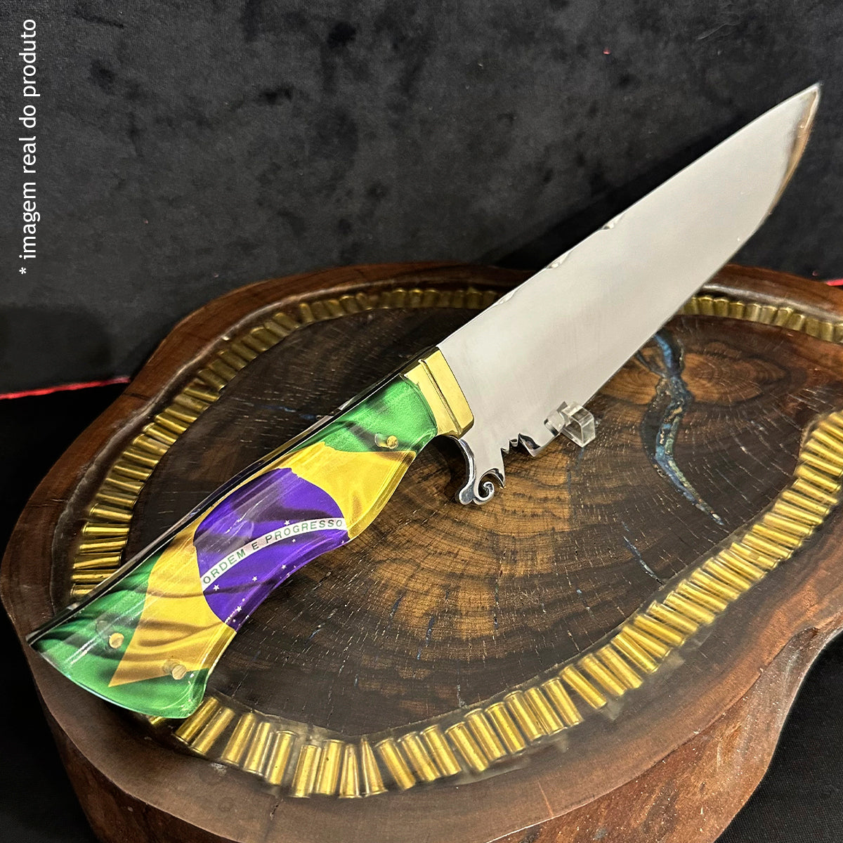 Faca Artesanal 10pol Aço Inox Brasil - Cabo Acrílico