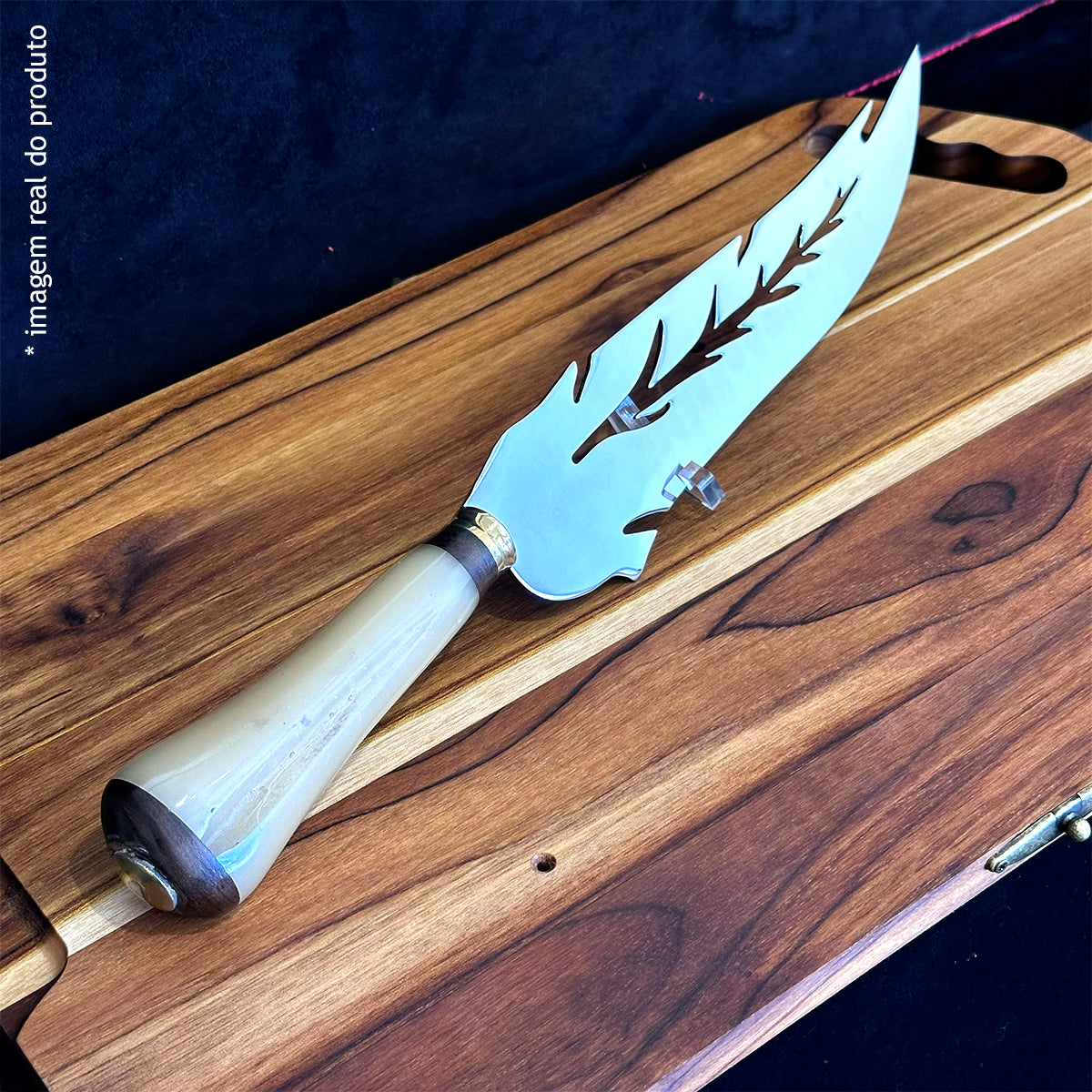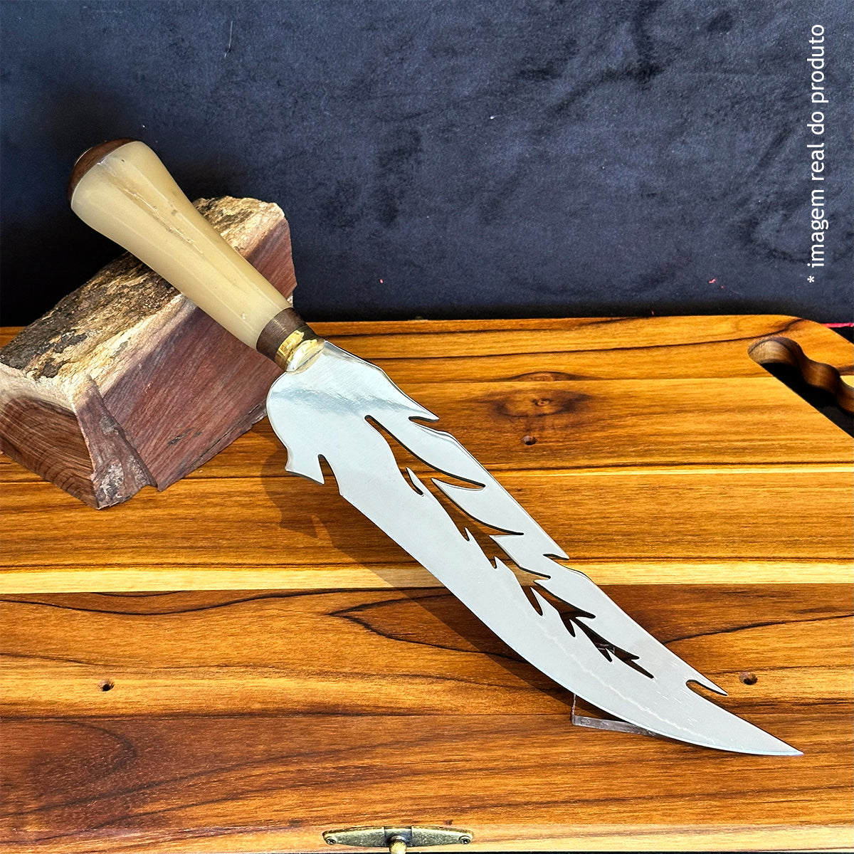Faca Artesanal Folha 10pol Aço Inox - Cabo Osso Bovino